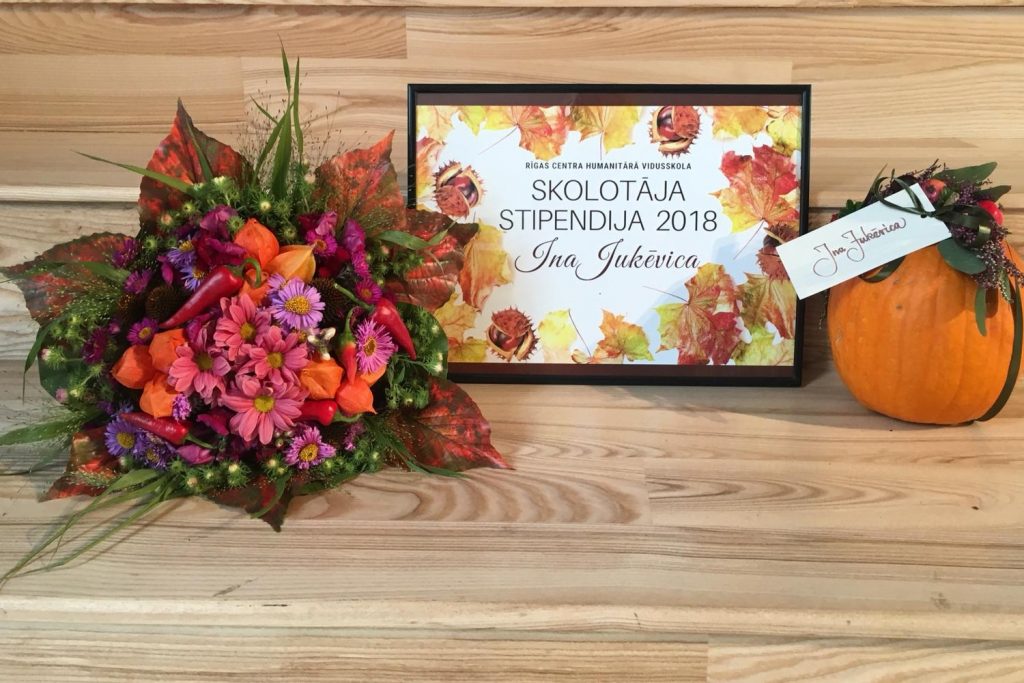 Šī gada 5. oktobrī, Skolotāju dienas svinīgajā pasākumā Rīgas Centra humanitārajā vidusskolā tika godināti visi Skolotāja stipendijas konkursā pieteiktie skolotāji un šī gada Skolotāja stipendijas saņēmēja – INA JUKĒVICA.