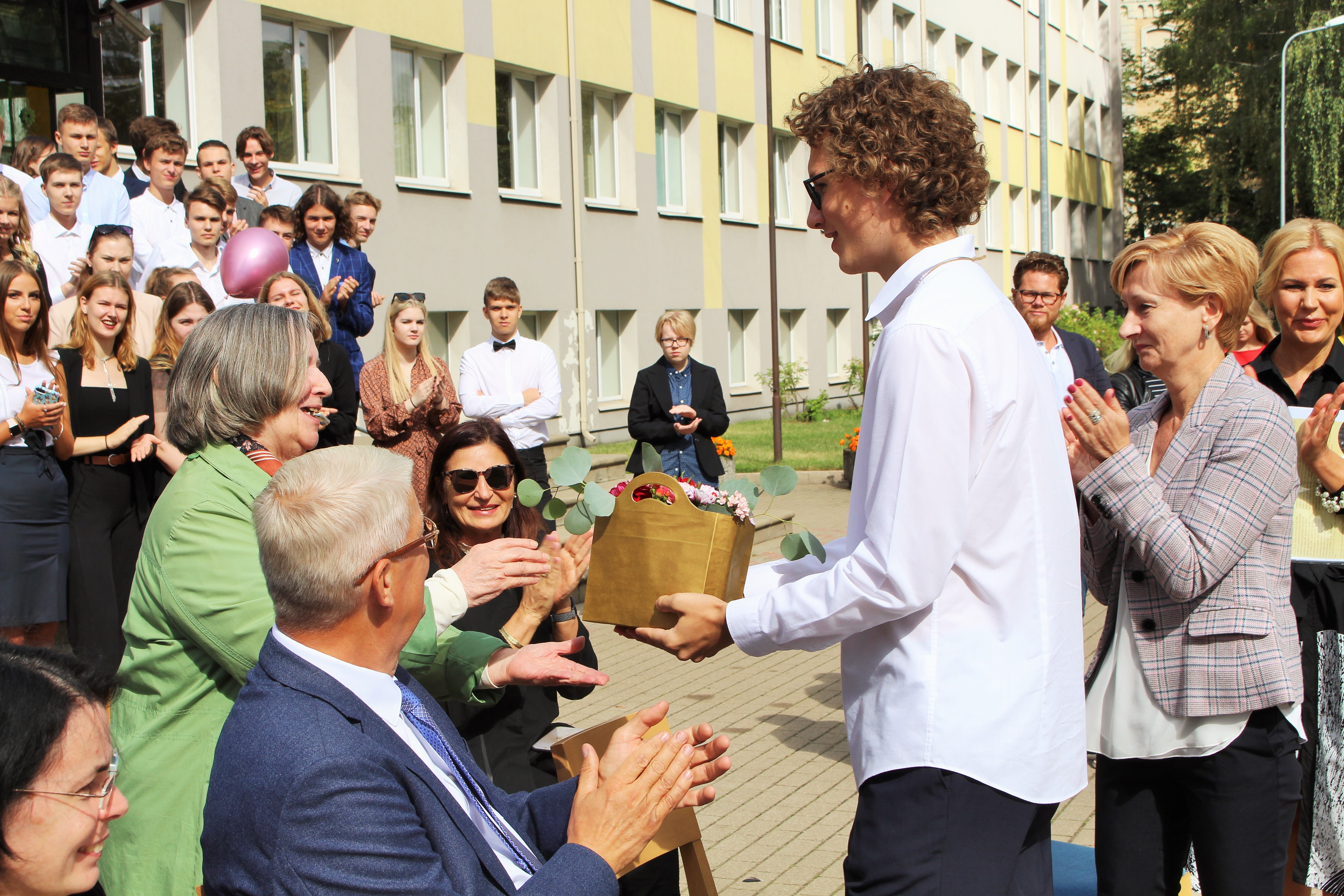 Jaunais mācību gads Rīgas Centra humanitārajā vidusskolā šogad ir sācies īpaši svinīgi – tieši 1. septembrī skolas pedagogi, skolēni un viesi pulcējās, lai piedzīvotu divus skaistus notikumus – skolas himnas “Dzimtā skola” ieraksta pirmatskaņojumu un novēlētu spožu nākotni bronzas kastanim, lai tas tiešām kļūst par veiksmes simbolu skolas gaitās.