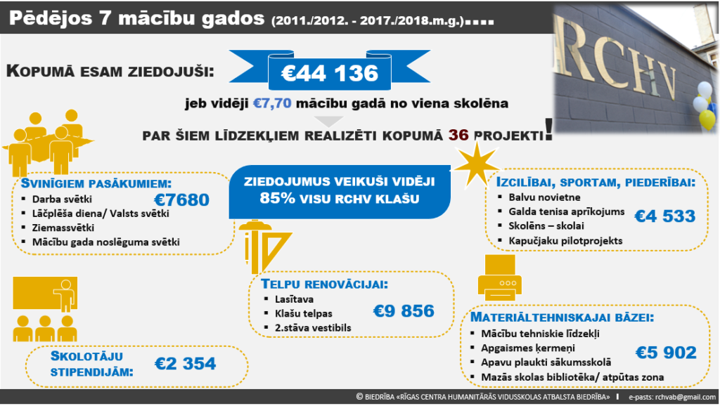 2018. gada pavasarī RCHV Atbalsta biedrība jau otro reizi īstenoja RCHV skolēnu vecāku aptauju, kuras mērķis – apzināt RCHV skolēnu vecāku viedokli saistībā ar RCHV Atbalsta biedrības darbību, kas ļautu pilnveidot tās darbību un izrietoši sekmēt finansējuma piesaisti skolai būtisku projektu īstenošanai.