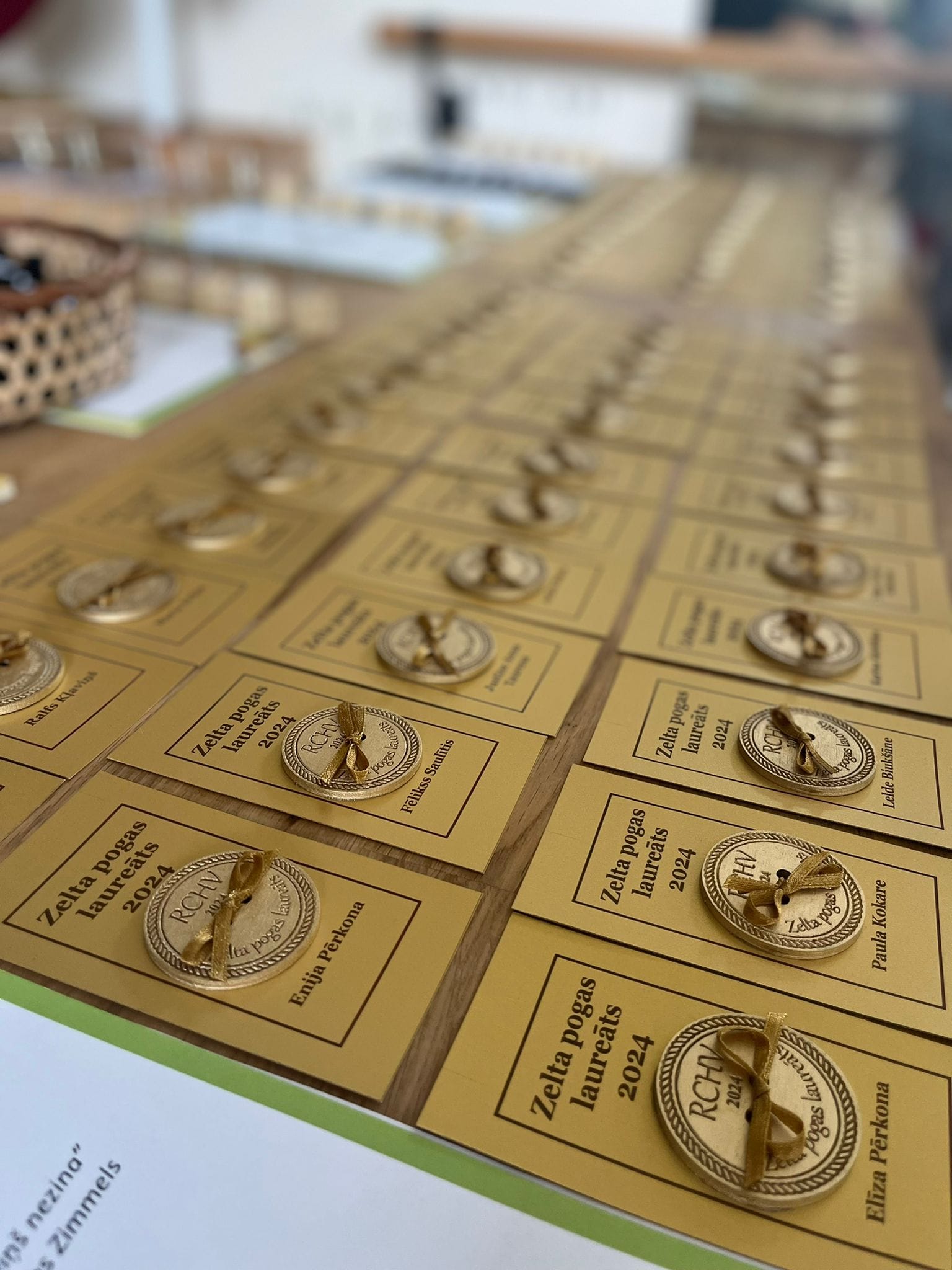 Zelta pogas mūsu skolā kļuvušas par izcilības zīmi. Tās tiek piešķirtas skolēniem par izcilu mācību darbu, kā arī par godalgotām vietām un atzinībām valsts un pašvaldības konkursos un olimpiādēs. Šis apbalvojums nav tikai piemiņas zīme — tā ir cieņas apliecinājums bērna prātam, centībai un neatlaidībai.