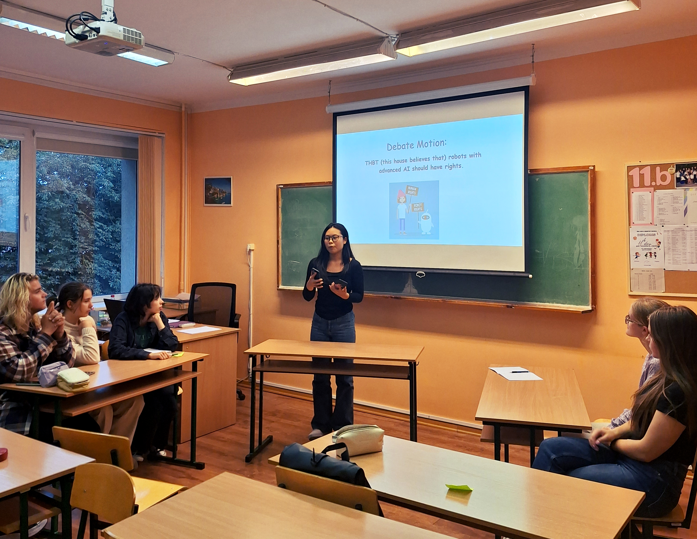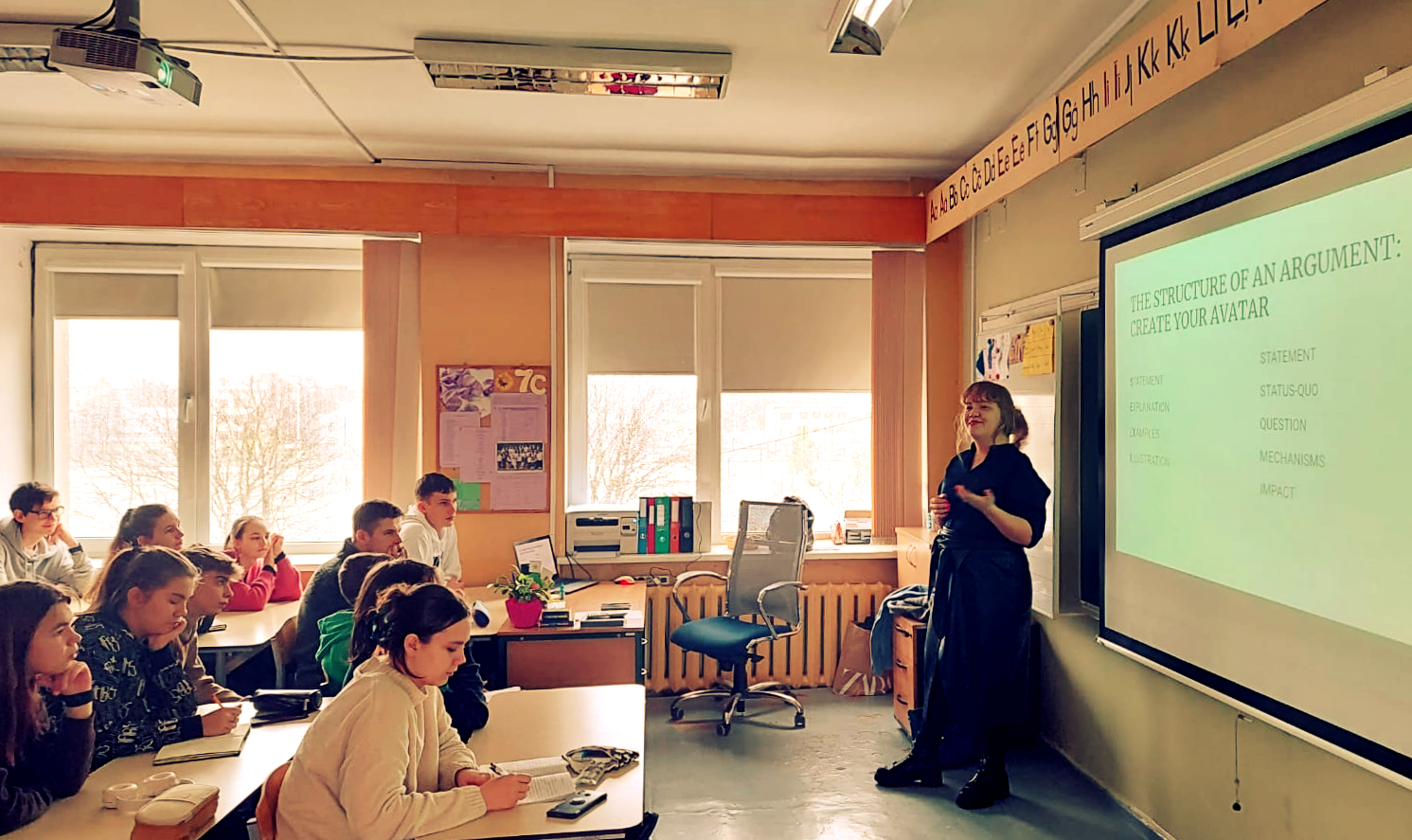 Nodarbībā Adele dalījās pieredzē par argumentu veidošanas struktūru un to pielietojumu. Jauniešiem bija brīnišķīga iespēja iepazīt un izmēģināt dažus paņēmienus, kuri var palīdzēt uzvarēt debatēs.
