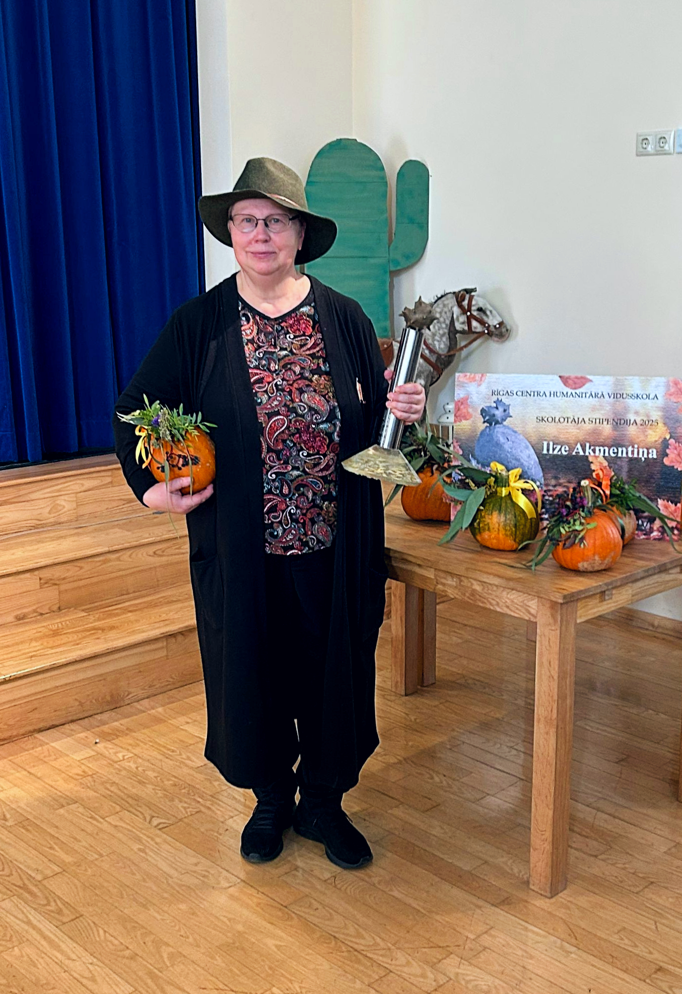 Šogad Starptautiskajā skolotāju dienā īpaši sveicam vēstures skolotāju ILZI AKMENTIŅU, kura kļuvusi par 2025. gada SKOLOTĀJA STIPENDIJAS ieguvēju. Viņa ir skolotāja, kura ne tikai motivē skolēnus sasniegumiem, bet arī tic viņu spēkiem un palīdz īstenot sapņus. Ilze Akmentiņa ir vairāku skolas tradīciju un pasākumu aizsācēja un organizatore, kā arī uzticams atbalsts kolēģiem ikdienas darbā.
